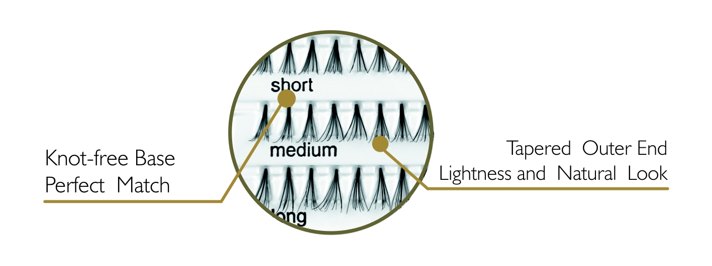 Perhaeps Flare Lashes have no visible ends, or so called knots, which creates a very natural effect. Moreover, the tapered outer ends of the lashes give Perhaeps Flare Lashes the lightness of natural eyelashes. Perhaeps Flare Lashes are available in three convenient sizes.